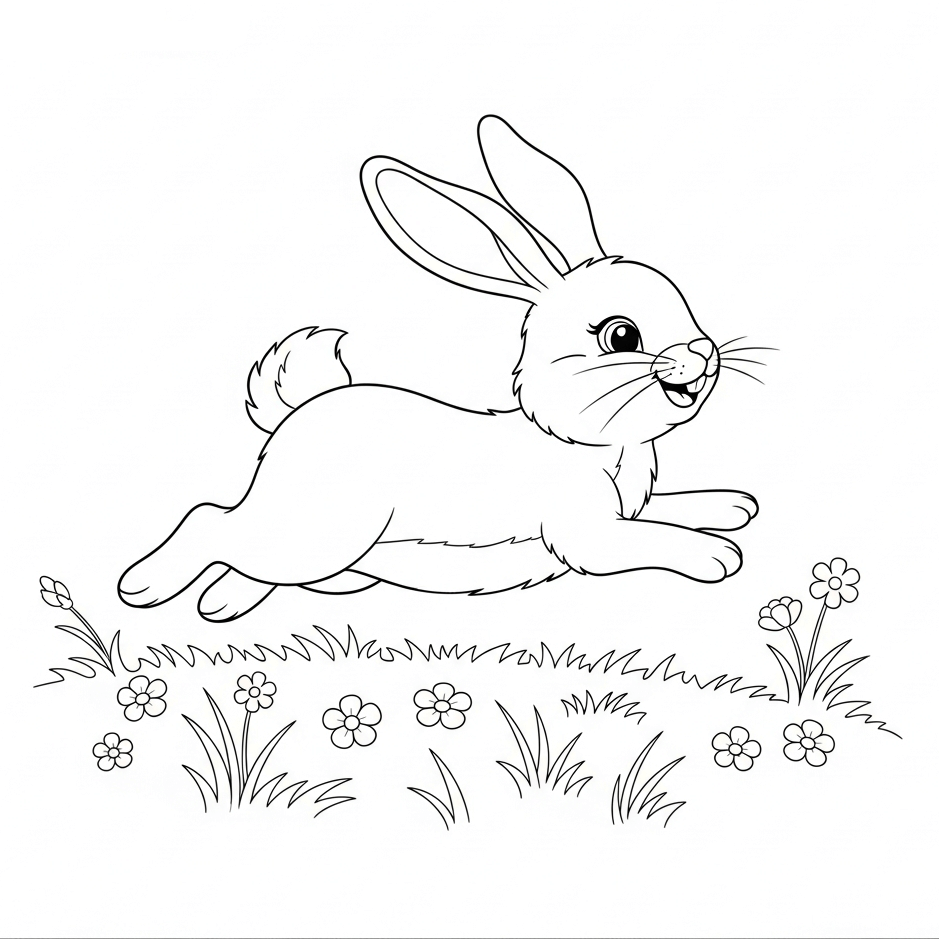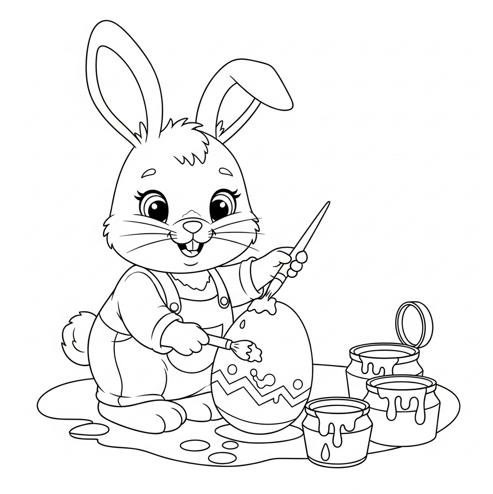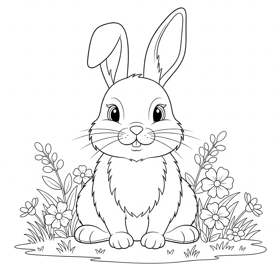 - Beispiel-Prompt: Einfaches Ausmalbild von einem süßen Osterhasen, der auf einer Blumenwiese sitzt (nur schwarze Linien auf weißem Hintergrund, keine zusätzlichen Elemente)