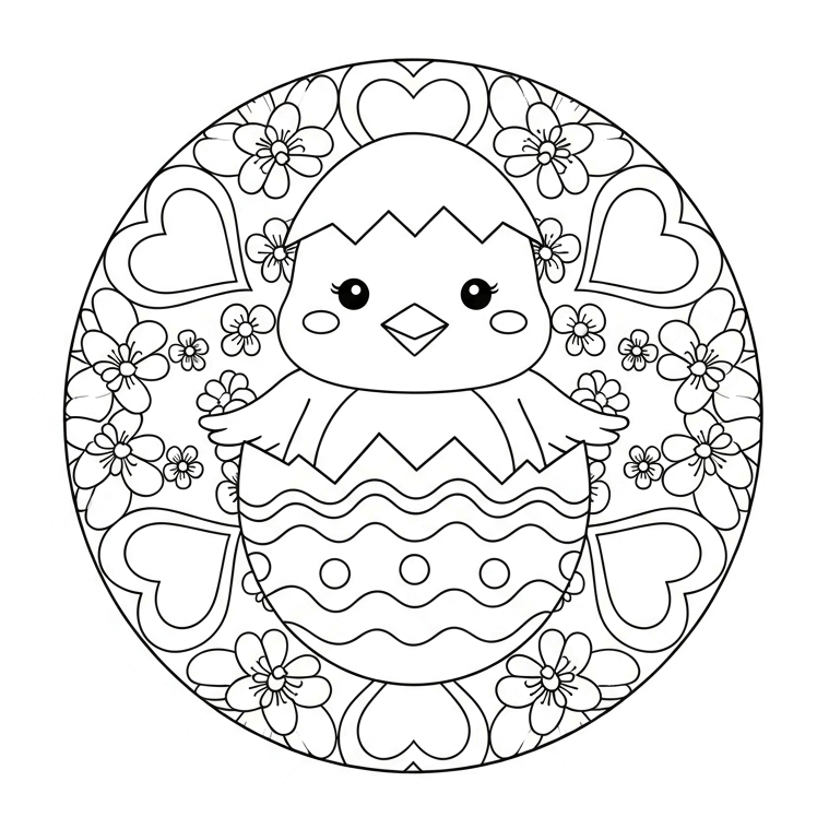 Hier sind schöne Mandala-Ausmalbilder zu Ostern, die sich besonders gut für Kinder eignen.