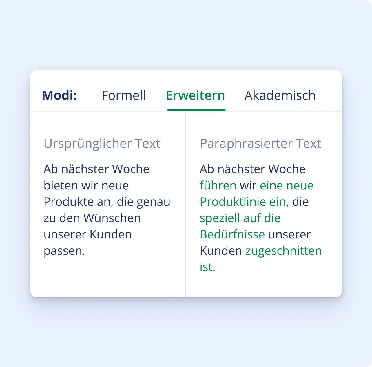 Wenn du auf der Suche nach weiteren alternativen Formulierungen bist, kannst du mithilfe von QuillBot deinen Text umschreiben.